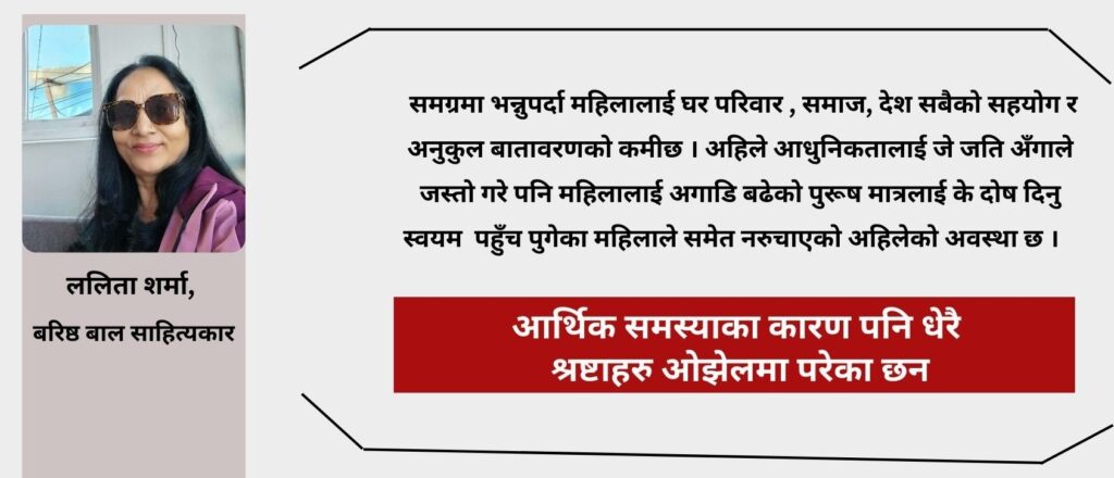 आर्थिक समस्याका कारण पनि धेरै श्रष्टाहरु ओझेलमा परेका छन ः ललिता शर्मा, बरिष्ठ बाल साहित्यकार