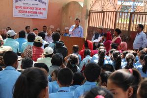 विद्यालयलाई उपकरण प्रदान गर्दै सुवेदीले नेपाल भूकम्पको जोखीममा रहेको बताए ।गोर्खाको बारपाकलाई केन्द्रविन्दु बनाएर गएपछि नेपालका धेरै क्षेत्रहरु भूकम्पको उच्च जोखीममा रहेको म लगाएत धेरै साईटिस्टहरुले पत्ता लगाएको उनले बताए । नेपालमा जुनसुकै समयमा पनि भूकम्प जान सक्ने हुँदा आफुले नेपालका केहि जिल्लामा यो यन्त्र प्रदान गरेको बताए । विद्यार्थीलाई जनचेतना फैलाउने हिसाबले विद्यालयमा जडान गरिएको हो, उनले भने,–‘विद्यार्थीले थाहाँ पाएपछि घरपरिवार समाजमा समेत यसबारे जानकारी गराउनेछन् । ’